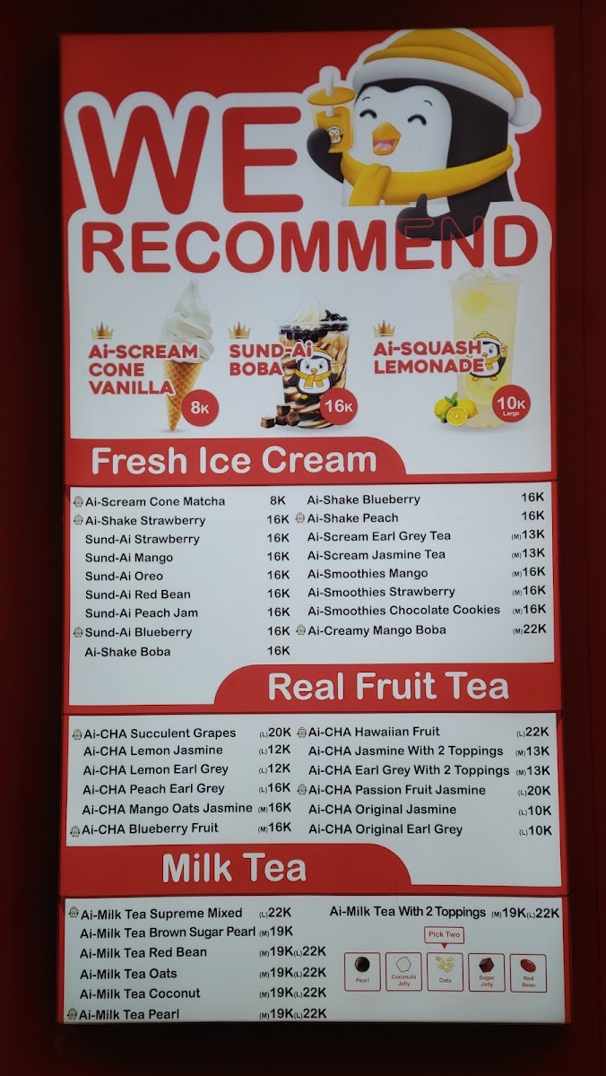 Whether you seek a quick treat or a relaxed outing, Ai-CHA Ice Cream & Tea X Zhengda combines taste, comfort, and value, making it a standout destination in the bustling Citra Raya area.